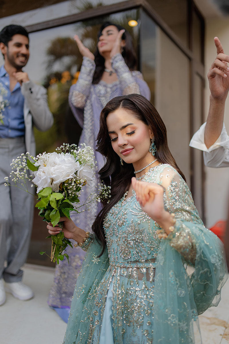 Embroidered, sequined & hand embellished Front yoke (Net)